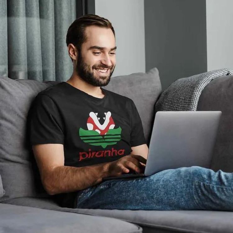 Design: Showcasing the classic Piranha Plant from the Super Mario series, this t-shirt is a must-have for any fan.The vibrant graphic pops against the black background, making it a standout piece.