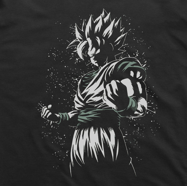 This Dragonball themed t-shirt features a Super Saiyan, charging up! Perfect for any fan of Dragonball, Dragonball Z or Dragonball Super. This 100% cotton T-shirt is printed using the direct to garment technique, using non-toxic, water-based inks.