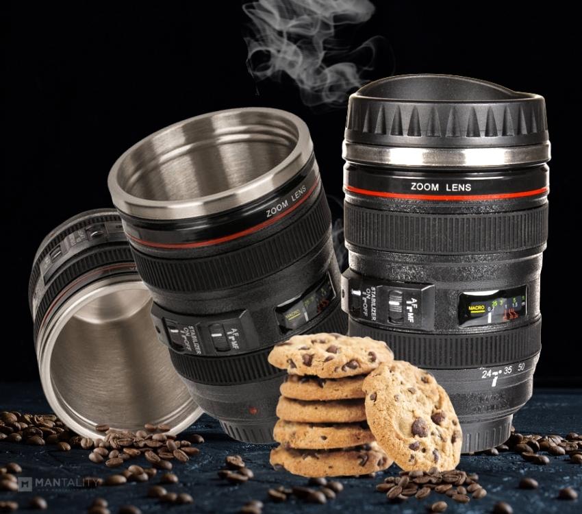 This camera lens coffee mug is also suitable to travel with as it contains stainless steel inner to keep your tea and coffee hot, and also has a pop-off lid with a sliding mouthpiece.