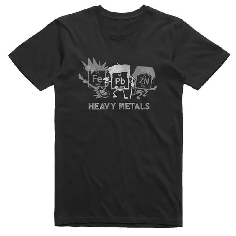 Whether you're a chemistry enthusiast, a music aficionado, or simply someone who appreciates the fusion of art and science, our Heavy Metals T-Shirt is sure to make a statement wherever you go. Wear it proudly and let your love for heavy metals shine!