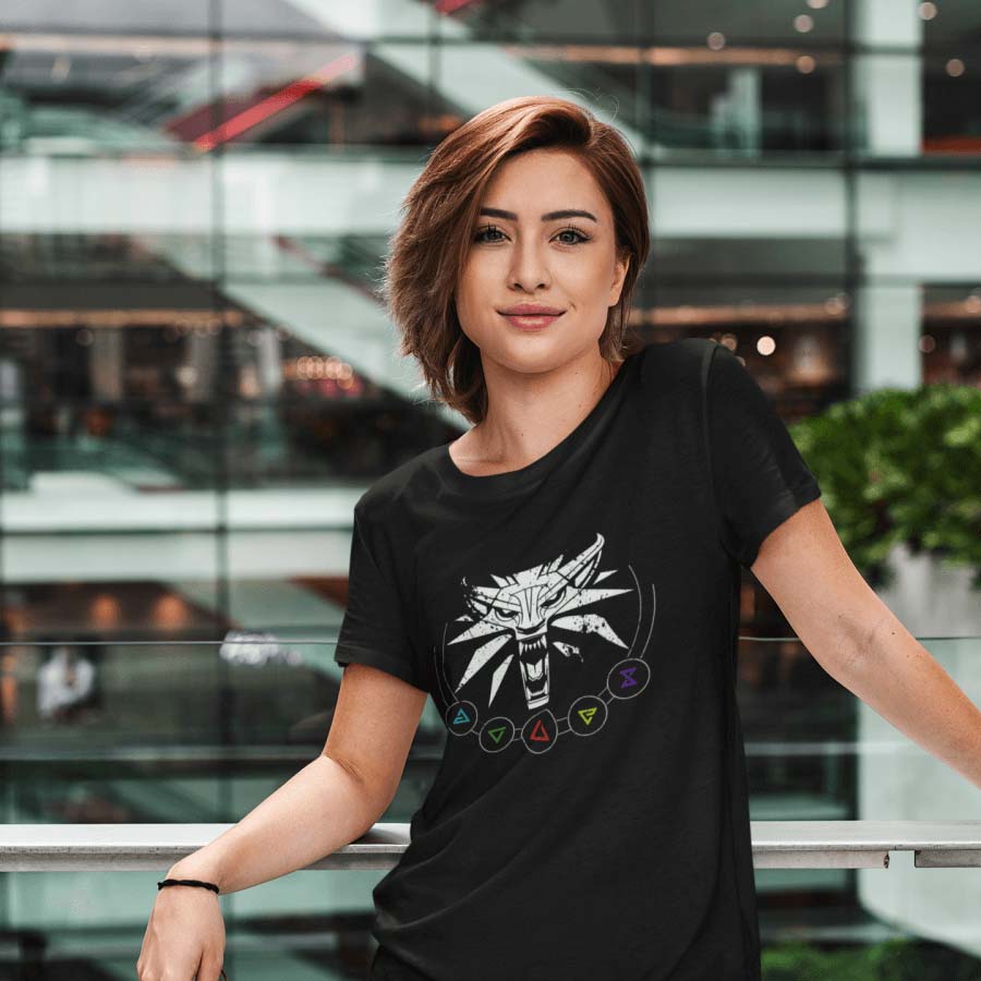 Step into the world of The Witcher with this classic short-sleeve Witcher T-Shirt, paying tribute to the legendary School of the Wolf. Designed for true fans of Geralt of Rivia, this shirt features the wolf medallion at its center, surrounded by the iconic Witcher signs.
