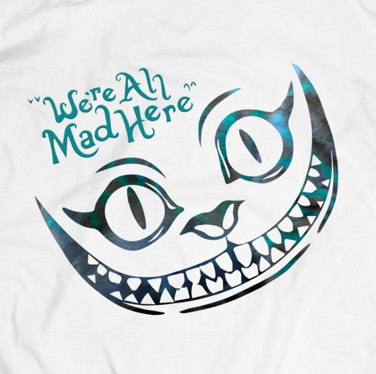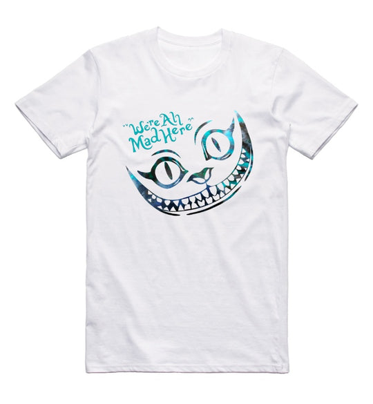 This T-shirt features the Chesire cat from Alice in Wonderland with one of his signature phrases “We're all mad here.”Our ethically sourced, 100 % non shrinking cotton shirts are printed with the DTG printing technique. Each...Regular price R295.00