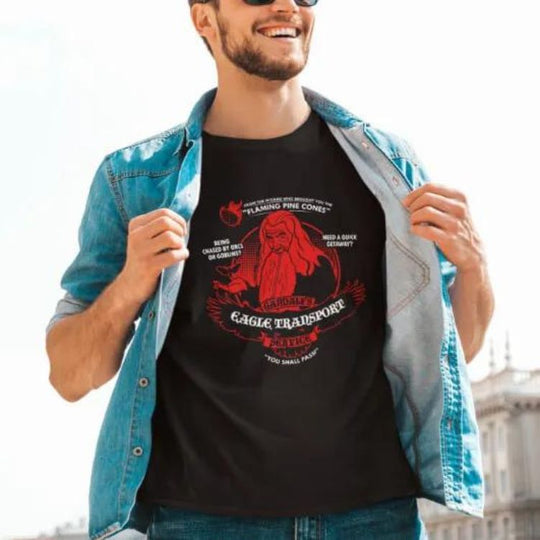 Step into Middle-earth with a touch of humor with our "Gandalf's Transport Service" T-Shirt. Perfect for fans of J.R.R. Tolkien's epic saga, this funny t-shirt adds a whimsical twist to the legendary adventures.Our ethically sourced, 100%...Regular price R329.00 -
