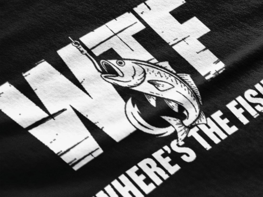 WTF Where's the Fish Funny Fishing T-Shirt - Black